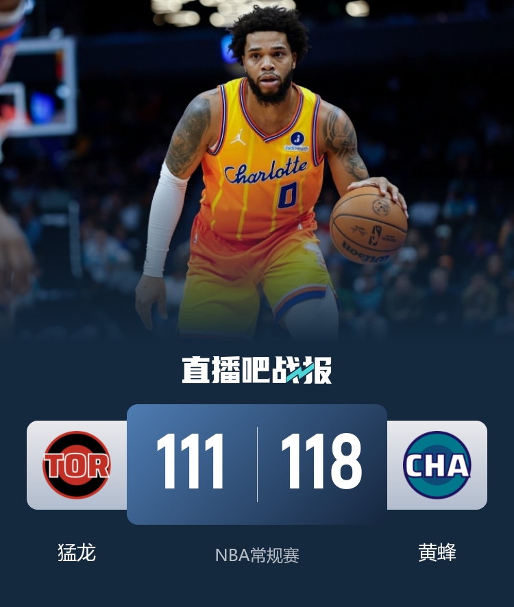 比赛开始,猛龙上来全员开花,6投全中轰出15-2梦幻开局,随后克尼佩尔连续2记三分止血,猛龙首节领先13分,次节黄蜂全民皆兵开始追分,英格拉姆和巴恩斯连续给出回应,但黄蜂还是能半场追到差6分。下半场,米勒连续杀伤带队10-0一度追到差1分,但猛龙连续外线发炮再次稳住局势,双方继续拉锯战,三节猛龙还领先7分,末节猛龙重新拉开双位数领先,双方展开拉锯战,后半节猛龙突然断电,黄蜂轰出12-0直接追平比分,奎克利抛投止血,小桥两罚一中但克尼佩尔关键三分再追平,双方进入加时。加时赛,小桥站出来里突外投连砍8分建立主动权,塞克斯顿中投领先6分,最终黄蜂加时118-111力克猛龙,终结对手9连胜。